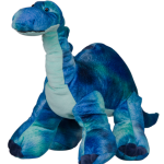 With a long neck and big feet this beauty will leave fossilized footprints on your heart. This dinosaur has plastic eyes, a locking zip tie and Velcro closure. This dinosaur has plastic eyes.