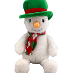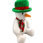 Frostbite, the heartwarming snowman! Wearing a bright green top hat and festive plaid scarf, he’s here to melt hearts and bring joy to any wintry day and make Christmas even more so special! Frostbite has lightly prestuffed arms and legs. Perfect to sit on a shelf and dangle.
