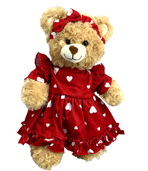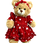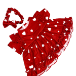 Adorable red dress covered with hearts with matching headband, perfect for Valentine’s Day or anytime you want to show some love!